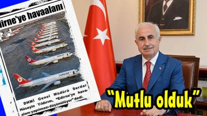 Açıklamada görüşlerine yer verilen Vali Dursun Ali Şahin de "DHMİ'nin Edirne'nin de aralarında bulunduğu 5 ile havaalanı yapılmasının planlandığını öğrendik. Bu bizi oldukça mutlu etti" değerlendirmesinde bulundu.