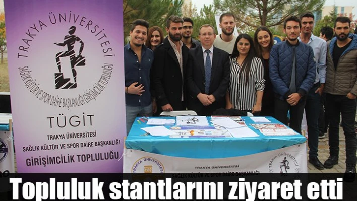 TÜ Rektörü Prof. Dr. Tabakoğlu, topluluk stantlarını ziyaret ederek, öğrencilerden bilgi aldı.