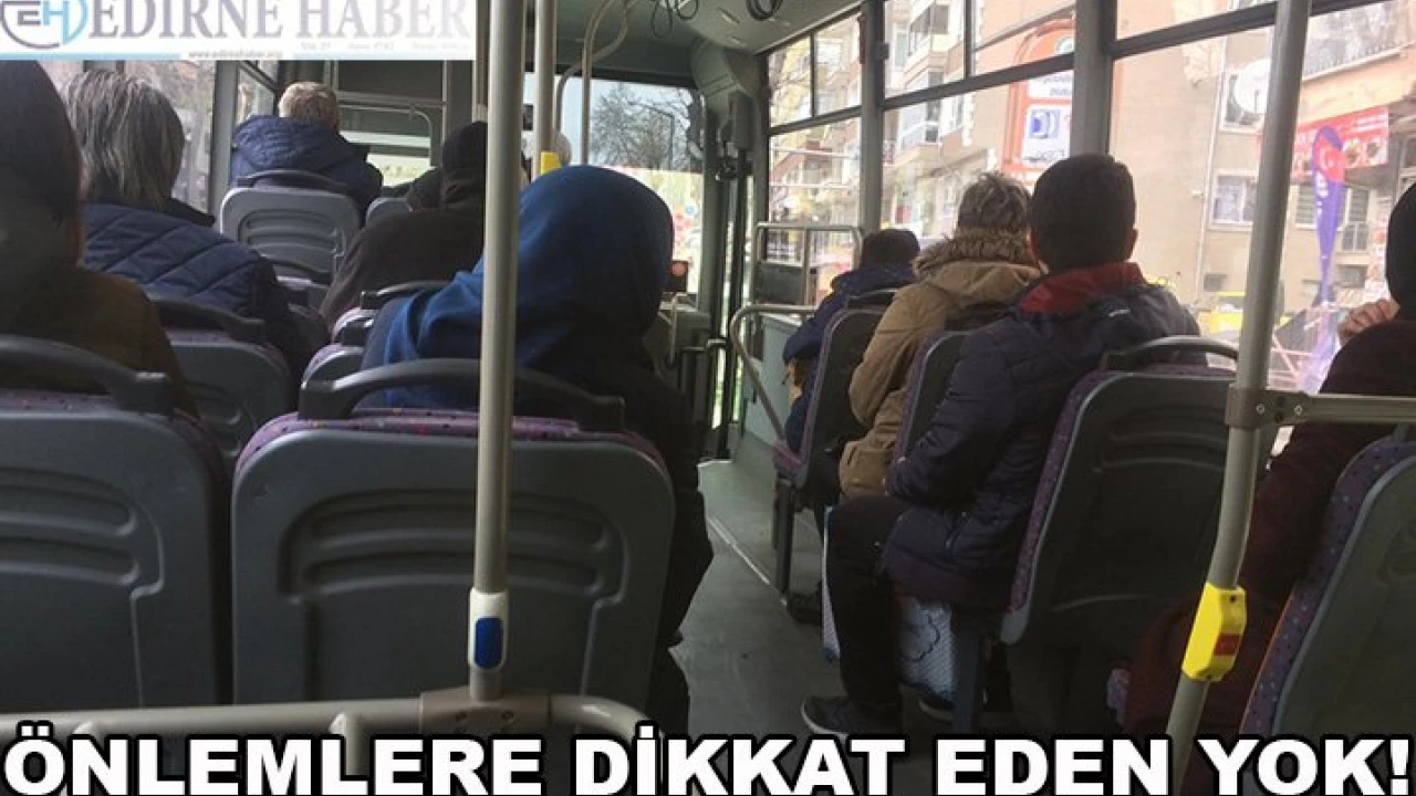 Edirne'de şehiriçi yolcu taşımacılığı yapan otobüsler kapasitelerinin yüzde 50'si kadar yolcu kabul ediyor. Ama vatandaşların oturma şekli virüse karşı alınan önlemlere ne kadar dikkat edildiğini de gözler önüne serdi.