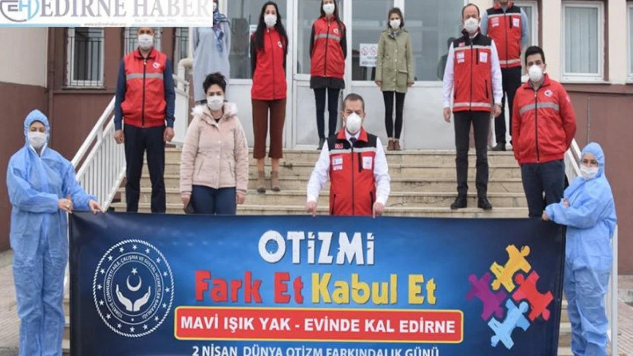 Koronavirüs önlemleri kapsamında etkinlik ve kutlamaların iptali dolayısıyla Edirne Aile, Çalışma ve Sosyal Hizmetler İl Müdürü Bilgin Özbaş ve çalışan personel 2 Nisan Dünya Otizm Farkındalık Günü vesilesiyle 'Otizmi Fark Et, Kabul Et Mavi Işık Yak-Evinde Kal Edirne' yazılı pankart açtı.