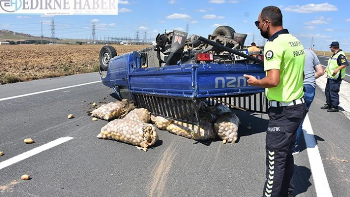 Tekirdağ'ın Çorlu ilçesinde devrilen patates yüklü kamyonetin sürücüsü yaralandı.