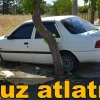 Seyir halinde aracının sol ön lastiği patlayınca direksiyon hakimiyetini kaybeden sürücü hafif yaralı kurtuldu.