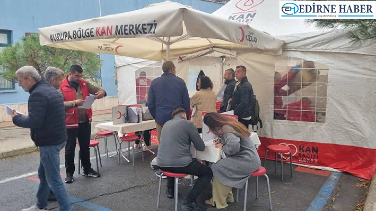 Edirne'de Türk Kızılayı ve İl Milli Eğitim Müdürlüğü iş birliğiyle Plevne İlkokulu'nda düzenlenen kan bağışı etkinliği veliler tarafından yoğun ilgi gördü.