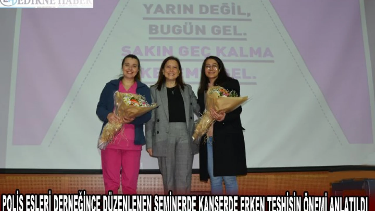 Edirne Emniyet Müdürlüğü konferans salonunda Polis Eşleri Derneği Edirne Şube Başkanı Doç.Dr. Nilüfer Alçalar himayesinde düzenlenen seminerde katılımcılara kanserde erken teşhisin önemi anlatıldı.