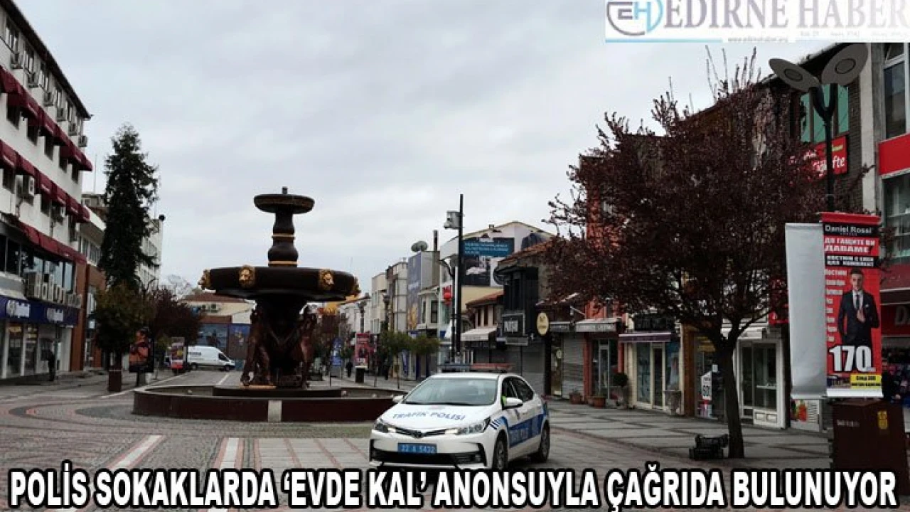 Edirne Emniyet Müdürlüğü ekipleri cadde ve sokaklarda ring halindeki ekip otolarından "Evde kal" anonsu yapıyor.