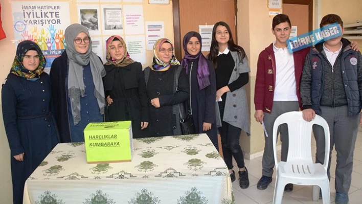Lapseki Anadolu İmam Hatip Lisesi öğrencileri, imam hatip ortaokulları ve liselerinde uygulanan İyilik Projesi Yarışması kapsamında, "Harçlıklar Kumbaraya" kampanyası düzenledi.