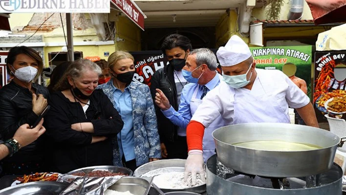 Heyet daha sonra Edirne'nin meşhur lezzetinin yapımını görmek ve tatmak için kentteki bir restorana geldi.