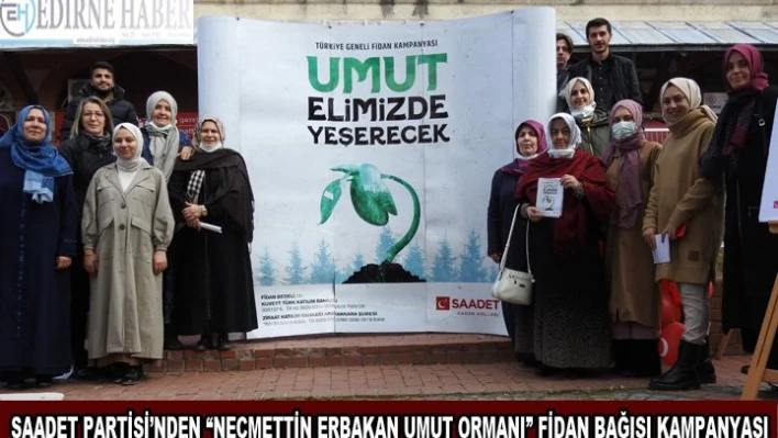 Saadet Partisi Edirne İl Kadın Kolları Başkanlığı, 'Prof. Dr. Necmettin Erbakan Umut Ormanı' fidan bağışı kampanyası düzenledi.Kampanya ile ilgili tanıtım yapan kadın kolları üyeleri, vatandaşlara hem lokma ikramında bulundu hem de kampanyaya davet etti.