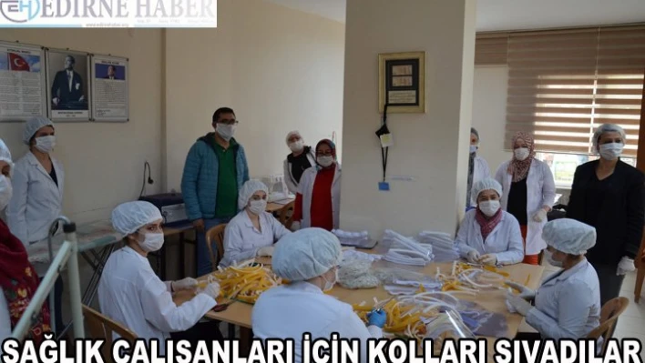 Edirne Halk Eğitim Merkezi'nde usta öğreciler koronavirüs salgınında görev yapan sağlık çalışanları için siper maske ve cerrahi maske üretiyor. Sultan 1'inci Murat Devlet Hastanesi'ndeki sağlık çalışanları için günlük bin adet siper maske ve 500 tane maske ürettiklerini dile getiren Edirne Halk Eğitim Müdürü İlhan Dinç "Halk eğitimdeki usta öğreticilerimizle birlikte Sultan 1'inci Murat Devlet Hastanesi'nde göre yapan sağlık çalışanları için günlük bin adet siperlik ve 500 adet maske üretiyoruz." Dedi.