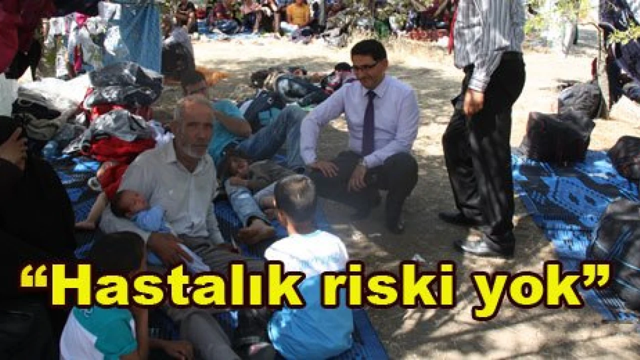 Sığınmacıları ziyaret eden İl Sağlık Müdürü Dr. Muhsin Kişioğlu, bulaşıcı hastalık riski olmadığını söyledi. 18 kişinin hastaneye kaldırıldığını ve gerekli tedavilerden sonra yine barındıkları alan bırakıldıklarını belirten Dr. Kişioğlu, “18 vakanın 3 yerinde, 15’i ise hastanede tedavi edildi. Daha sonra barındıkları alana bırakıldı. Genelde güneş çarpmasıi yorgunluk, güneş çarpması gibi vakalar. Bu vakalardan gelenlerin 5 tanesi çocuk. İçme suları ve tuvalet ihtiyaçları karşılanıyor. 112 ekiplerimiz sürekli olarak bekliyor” dediler.