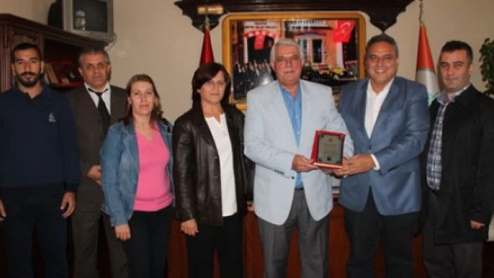 Edirne Belediye Başkanı Hamdi Sedefçi'ye, Esentepe Amatör Spor Kulübünden teşekkür plaketi.