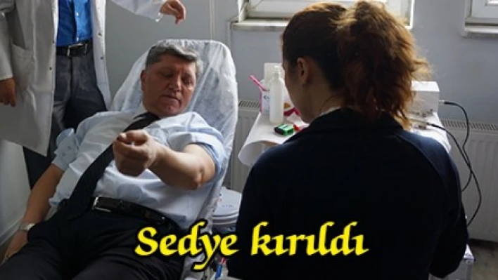 Edirne'de polis haftası nedeniyle düzenlenen kan bağışı kampanyasında kan vermek isteyen Emniyet Müdürü Rahmi Baştuğ'un uzandığı Kızılay'ın sedyesi ortasından kırıldı.