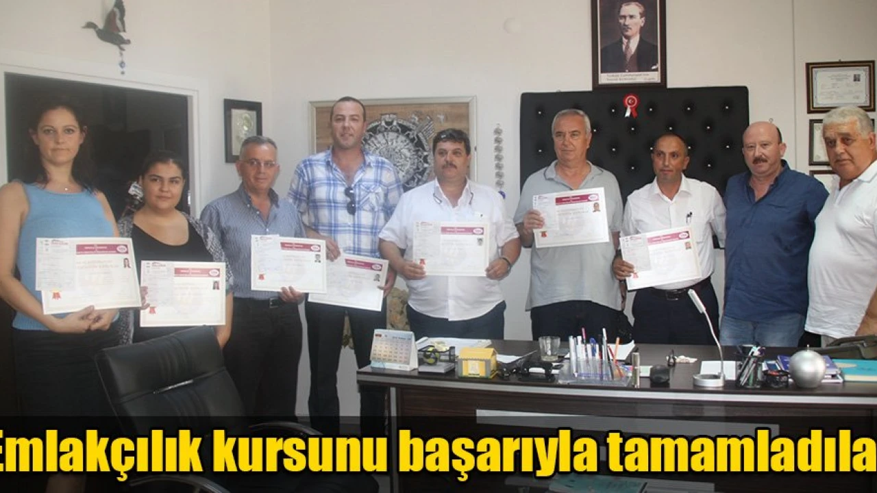 Emlakçılık kursunda başarılı olanlara sertifikaları Türkiye Tüm Emlak Müşavirleri Federasyonu Yönetim Kurulu Üyesi İlhan Kurt'un katılımıyla verildi.