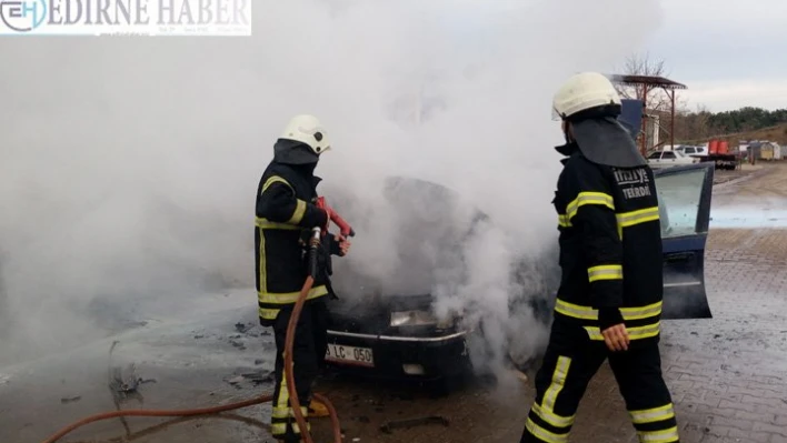 İtfaiye ekiplerince söndürülen yangın sonucu otomobil kullanılamaz hale geldi.