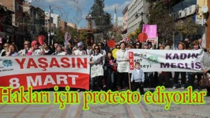 Edirne Kent Konseyi Kadın Meclisi Üyeleri ile Edirne Bedensel Engelliler ve Ailelerini Koruma Yardımlaşma Derneği Üyeleri, 8 Mart Dünya Kadınlar Günü kapsamında düzenlenen Kadın Şenliği Yürüyüşü kapsamında Edirne Belediyesi önünde toplandılar.