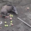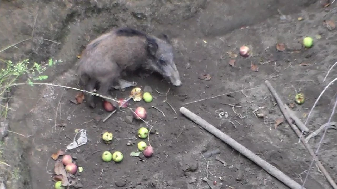 Daha sonra yukarıya çekilen domuz, doğal ortama bırakıldı.
