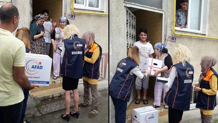 Edirne'de, İl Afet ve Acil Durum Müdürlüğü (AFAD) tarafından ihtiyaç sahibi sığınmacı ailelere ramazan ayı dolayısıyla gıda yardımında bulunuldu.