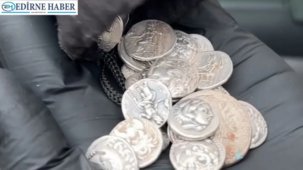 Edirne'de, tarihi eser niteliğindeki sikkeleri yurt dışına kaçırmaya çalışırken yakalanan 2 zanlı tutuklandı.