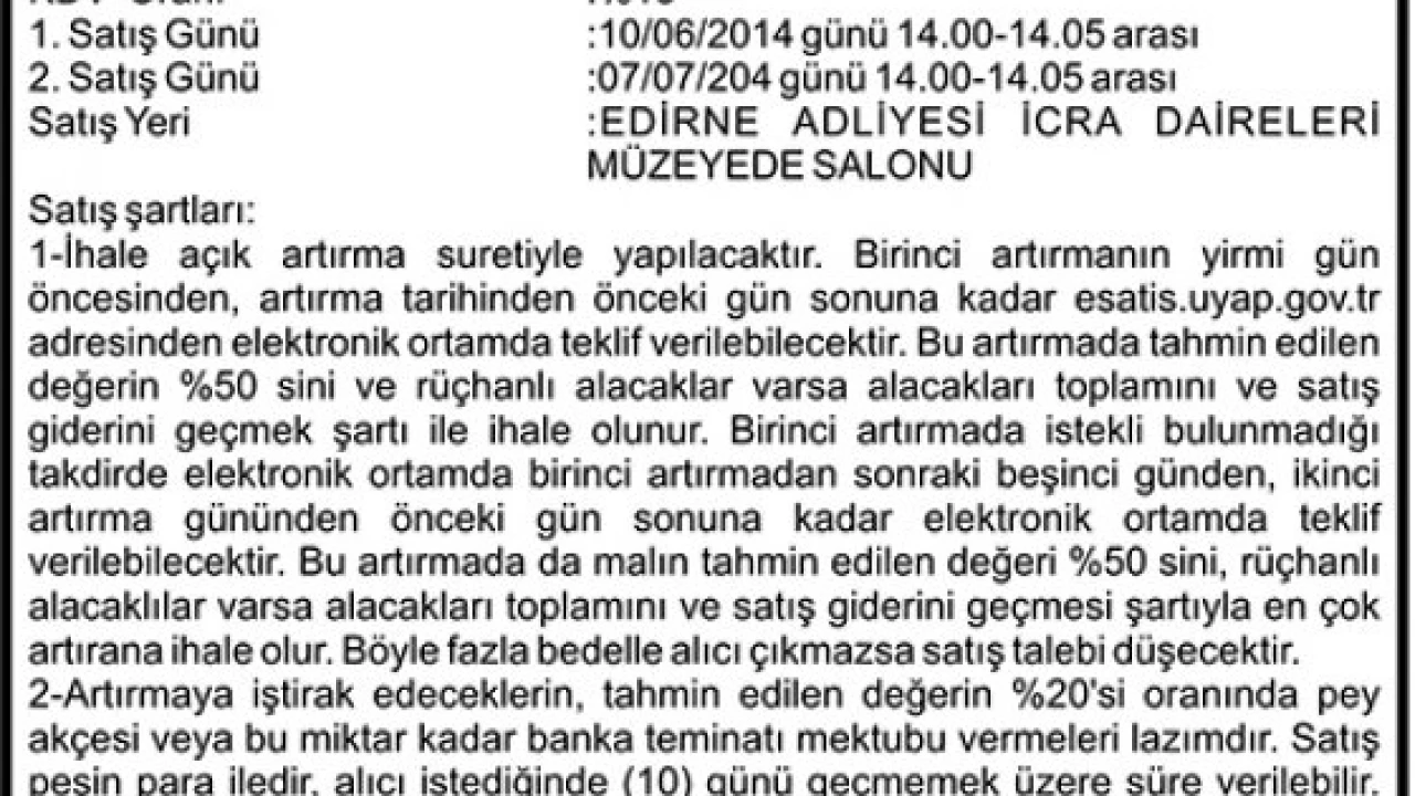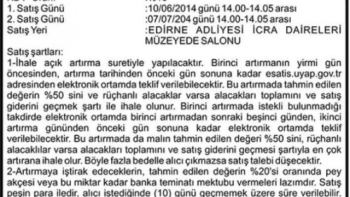 TAŞINMAZIN AÇIK ARTTIRMA İLANI