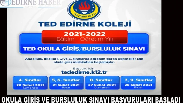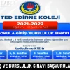 TED Edirne Koleji, 2021-2022 Eğitim - Öğretim yılı için 4,5,6,7,8 ve 9'uncu sınıflara okula giriş ve bursluluk sınavı yapacağını duyurdu.