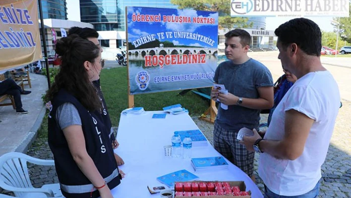 Edirne Emniyet Müdürlüğü ekipleri, Trakya Üniversitesi'ne kayıt yaptıran öğrencileri bilgilendirdi.