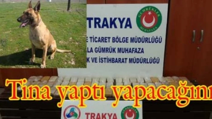 2011 yılında Trakya Gümrük Ticaret Bölge Müdürlüğü’ne bağlı İpsala Gümrük ve Gümrük Muhafaza Kaçakçılık ve İstihbarat Müdürlüğü’nde göreve başlayan narkotik köpek TİNA, 1 yıl 4 ayda 615 kilo uyuşturucu ele geçirdi.