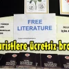 Ziyarete gelen turistler, kendi dillerine çevrilmiş kitap ve broşürlerden camiye ve İslam'a ilişkin bilgiler ediniyor.