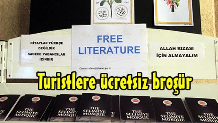 "Camimizi ziyarete gelen yabancı turistlere tanıtabilmek düşüncesiyle hem camiyle hem de yüce dinimiz İslam ile ilgili çeşitli broşürler bastırıyoruz, hazırlatıyoruz. Bunları turistlerin hizmetine ücretsiz sunuyoruz. Ziyarete gelen turistler bu uygulamadan son derece memnun. İnşallah devam edecek bu hizmet. Şu an İngilizce, Almanca, Yunanca ve Bulgarca broşürlerimiz ile İslam dinini tanıtan kitaplarımız var. Tabii bunları daha çeşitli dillerde bastırmayı düşünüyoruz."