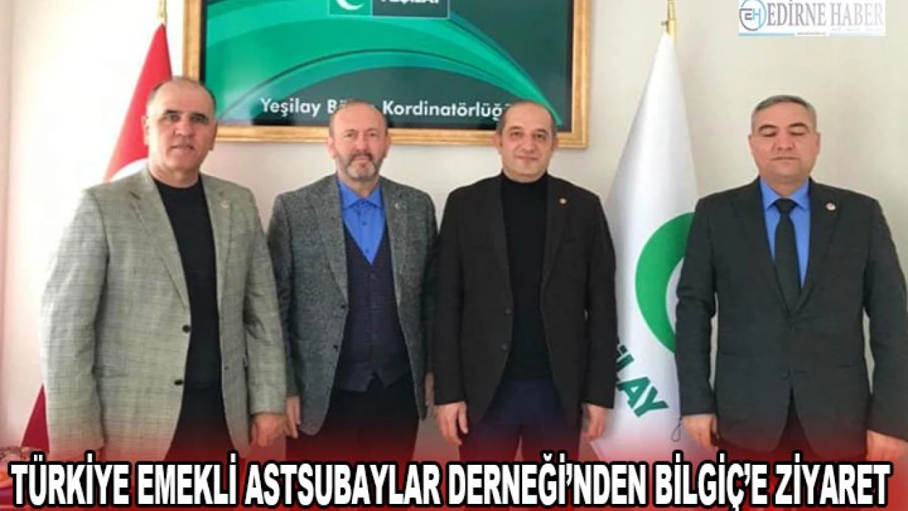 Türkiye Emekli Astsubaylar Derneği (TEMAD) Edirne Şube Başkanı Aydın Bildiş ve yönetim kurulu üyeleri, Yeşilay Haftası dolayısıyla Bölge Koordinatörü Sebahattin Bilgiç'i makamında ziyaret etti.