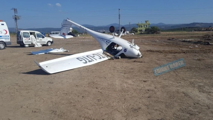 Gürer'in toprak zemine indirmeyi başardığı uçağın tekerleği yavaşladığı sırada taşa takılınca devrildi. Kazada hafif yaralanan Gürer, 112 Acil Servis ekiplerince hastaneye kaldırıldı.