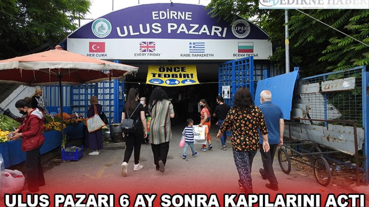 Edirne'de, Kovid-19 tedbirleri kapsamında yaklaşık 6 aydır kapalı olan Ulus Pazarı açıldı. Koronavirüs salgını sebebiyle Aralık ayından buyana kapalı bulunan Ulus Pazarı yeniden kapılarını açtı. Pazarda beklenen yoğunluk olmasa da Ulus Pazarı’na özlem duyan vatandaşlar, yasaklı günlerden sonra alışveriş yapıp pazarda stres attı. Pazar esnafı ise aylar sonra tezgahını açmanın mutluluğunu yaşadı.
