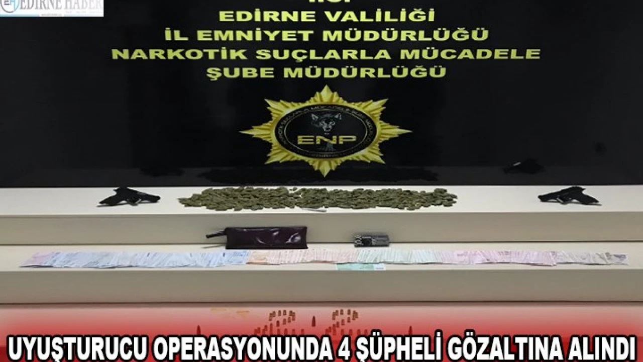 Edirne İl Emniyet Müdürlüğü Narkotik Suçlarla Mücadele Şubesi ekipleri tarafından, bir ev ve otomobilde yapılan arama sonucu 4 şüpheli gözaltına alındı.Â