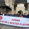 Edirne’de cuma namazının ardından Eski Cami önünde bir araya gelen platform paydaşları ve vatandaşlar, Filistin’de yaşananlara dikkat çekti. Basın açıklamasını Milli İrade Platformu adına TÜGVA Edirne Temsilcisi Muhammed Fatih Demir yaptı.