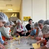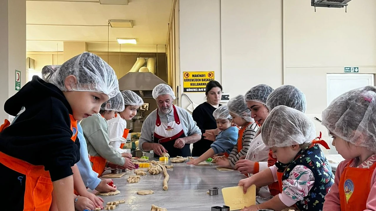 Etkinlik kapsamında öğrenciler, Osmanlı saray mutfağının önemli tatlıları arasında yer alan kavala kurabiyesi ile badem ezmesinin üretim aşamalarını yakından gözlemledi. Tarihi tariflerin nasıl hazırlandığını merakla takip eden minikler, sürecin her adımını ilgiyle izledi.