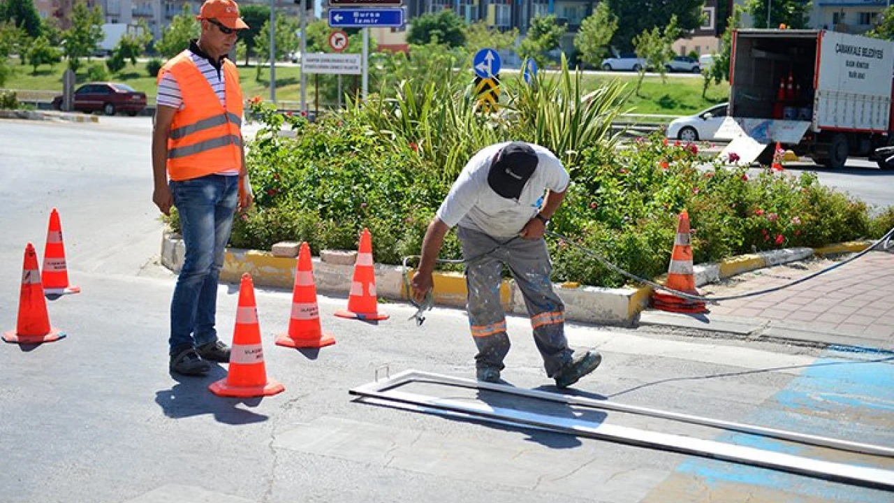 Çanakkale Belediyesi, kent içindeki yol çizgilerinin yenilenmesi için çalışma başlattı.