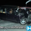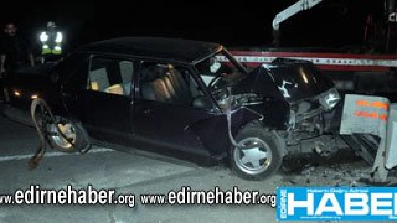Edirne'den Hacıumur köyüne doğru yol alan araç Kıyık Caddesi'nde otoban sapağında bariyerlere çarptı.