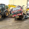 Yol çöktü, kamyon devrildi