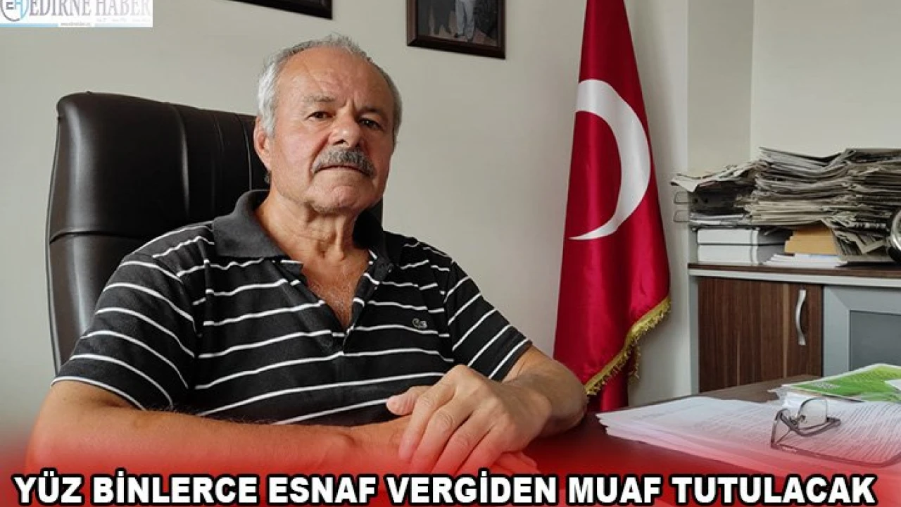 Yüz binlerce esnafı ilgilendiren vergi muafiyeti Türkiye büyük Millet Meclisi'nde (TBMM) kabul edilip yasalaşarak yürürlüğe girdi. Muafiyetin resmi gazetede yayınlanması esnafların yüzünü güldürdü. Konuyla ilgili açıklamalarda bulunan Edirne Bakkallar ve Tekel Bayileri Esnaf Odası Başkanı Süleyman Yaşagör, 'Esnafımız yine muhasebe tutmaya devam edecek ama yılsonunda kazanç beyannamesi bildirmeyecek.' dedi.