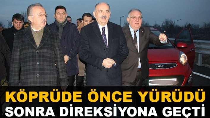 Bakan Müezzinoğlu Sarıbayır mevkisi girişinde Edirne Valisi Günay Özdemir'in makam aracının direksiyonuna geçti, bir süre köprüde ilerledi. Bakan Müezzinoğlu'na Vali Günay Özdemir'de yan koltukta eşlik etti.