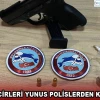 Otomobilde yolcu olarak bulunan C.M.B'nin üstünde yapılan arama sonucu satışa hazır halde 7 paket halinde 7,59 gram esrar bulunurken, H.Ç'nin aramasında ise ruhsatsız tabanca ve şarjörde dolu halde 2 mermi yakalandı.